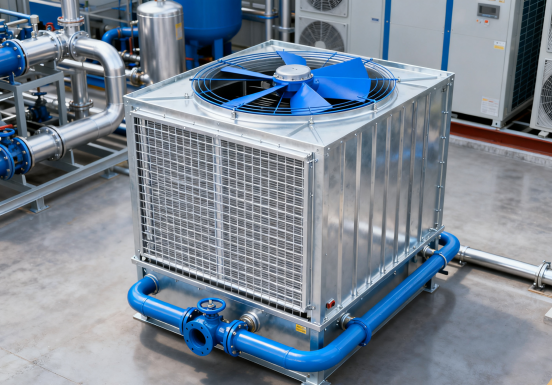 冷卻塔通常安裝在工廠屋頂或室外,它通過循環(huán)水系統(tǒng)與冷凝器相連。當制冷劑在冷凝器內(nèi)放熱后,水溫升高,經(jīng)過冷卻塔與空氣熱交換后被冷卻,再循環(huán)回系統(tǒng)。它的存在,確保了整個系統(tǒng)能持續(xù)有效地“閉環(huán)降溫”,防止冷凝壓力過高,保護壓縮機的穩(wěn)定運行。