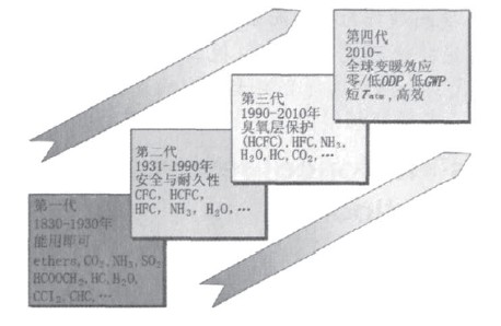 在民用空調、工業制冷中,制冷劑作為制冷系統中不可或缺的工質,一直發揮著重要作用。從歷史上看,制冷劑的發展可以分為四個階段。