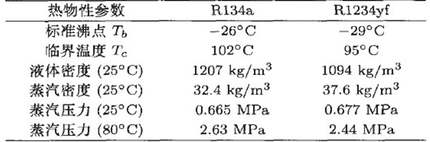 HFO-1234yf制冷劑是由美國霍尼維爾和杜邦兩大國際化學公司聯手研發的。根據報告,R1234yf的熱物理性質與R134a近似,其制冷量以及COP等性能參數與R134a的系統很相近。在實際汽車空調系統中,美國和日本的相關汽車空調行業也進行了測試,原R134a熱泵空調系統可以不用改動就可直接用此新型制冷劑進行替代,被認為是潛在的更優越于R134a的替代物。以下,是這兩種制冷劑的熱力性質比較: