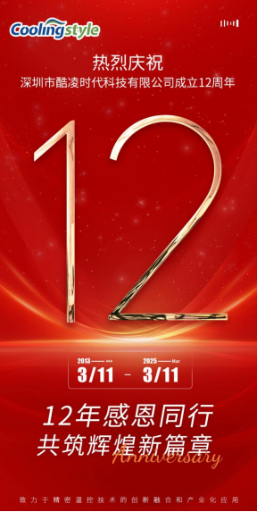 20132025酷凌時代(Coolingstyle已走過十二載。這一路,我們始終專注微型制冷與精密溫控技術,不斷創新,突破極限。感謝每一位客戶、合作伙伴與團隊成員的信任與支持,讓我們攜手共進,共創更加智能、高效、綠色的溫控未來!