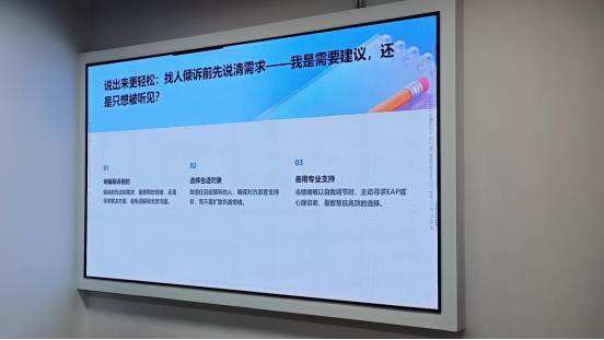 這一提醒讓許多員工陷入思考——溝通的有效性往往不在于說多少,而在于能否被理解。現(xiàn)場(chǎng)的分享與互動(dòng),讓人與人之間的情感聯(lián)系更為緊密,也讓大家意識(shí)到,職場(chǎng)溝通的溫度來自真誠(chéng)的傾聽與共情。