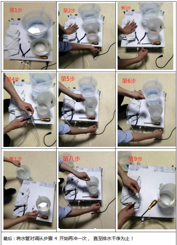 10、將水管對調從步驟 4 開始再沖一次, 直至排水干凈為止