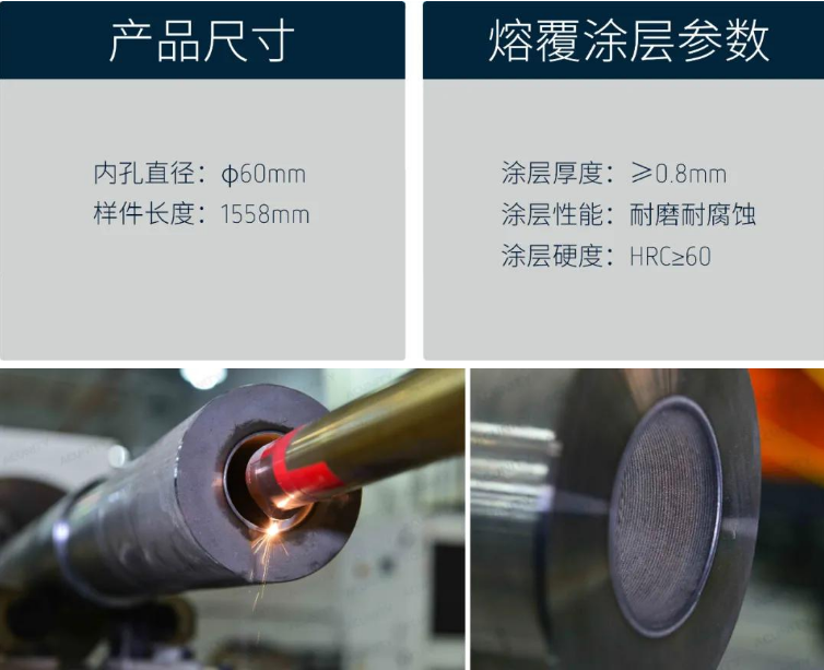 內(nèi)壁激光熔覆當(dāng)前備受同行業(yè)及工業(yè)界關(guān)注,為推動(dòng)與加速該技術(shù)在制造行業(yè)中的應(yīng)用,提高我國(guó)表面工程技術(shù)與再制造技術(shù)向綠色、智能、高效快速發(fā)展,亞琛聯(lián)合科技(天津)有限公司在粉體材料、核心部件、熔覆工藝、過(guò)程監(jiān)測(cè)等方面進(jìn)行了系統(tǒng)研發(fā),形成完整解決方案,并已成功推廣應(yīng)用到多種類(lèi)型零件的內(nèi)壁表面改性上,如煤機(jī)液壓支架中缸、石油鉆鋌、注塑模具等。加工效率、涂層服役性能均獲得客戶(hù)認(rèn)可,特別是在小孔徑、大徑深難加工零件的內(nèi)壁改性與修復(fù)更是具有獨(dú)特優(yōu)勢(shì)。