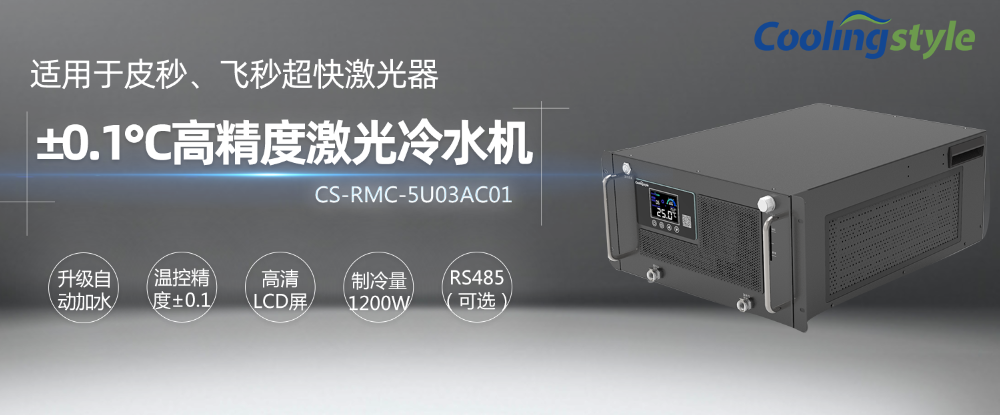 作為激光器配套設備生產企業,酷凌時代,專注微環境制冷,涉及產品各種小型工業冷水機,高精度激光冷水機,紫外激光冷水機等。公司主推產品之一:CS-RMC-5U03超快激光冷水機,新增功能自動加水,名義制冷量1200W,高精度±0.1℃,自主研發控制算法,使冷水機在不超出其最大制冷能力的任何負載下都能使水溫保持高精度,調節速度快,穩定性高,可用于皮秒、飛秒超快激光器冷卻 ,為國產超快激光器的應用降溫,提供更多的制冷保障。